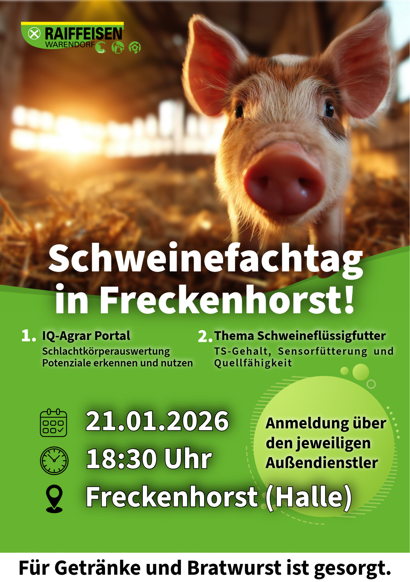 Am 21. Januar dreht sich in Freckenhorst alles um effizientes Datenmanagement und die perfekte Flüssigfütterung. Mit dabei: Ein Spezialist aus den Niederlanden mit exklusiven Insights zu Quellzeiten und Hygiene. 🇳🇱